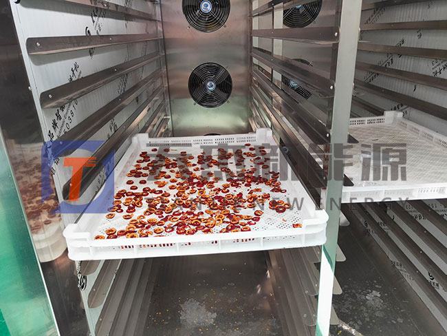 三、山楂烘干溫度:然后烘干過程山楂烘干房溫度控制在60°C---65°C,當山楂的含水量在15%左右時溫度需要逐漸減小,該過程約在12--15個小時左右。山楂的水份含量大,在烘干過程中,相對濕度在70%以上時需增大通風排濕,使其山楂烘干均勻品質好。