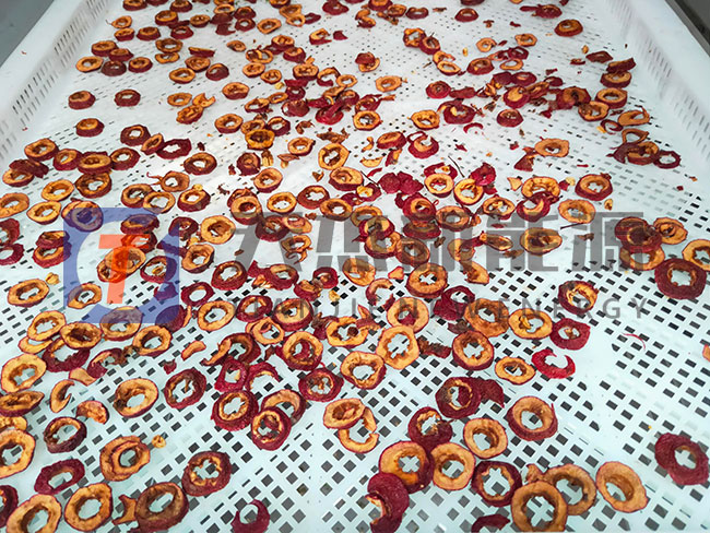 四、回軟,分級,包裝需等山楂片冷卻到常溫方可進行。如果量大的情況下,山楂片烘干系統(tǒng)可以定制多套單機版,這樣將山楂片的進料時間錯開,同時出料的時間自然分開,便于生產化的工作。