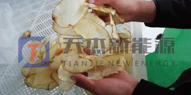接下來是將土豆片分別放入托盤之中,放入土豆片烘干機(jī)進(jìn)行烘干,土豆片烘干用多少溫度合適?前期先用低溫定色,設(shè)置溫度40℃左右,再慢慢升溫,后期烘干溫度控制在60℃一70℃, 要求土豆片含水量為10%以下。