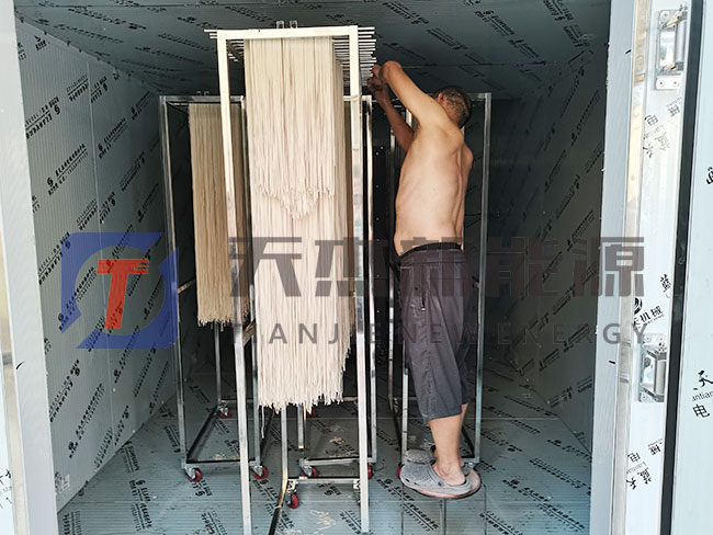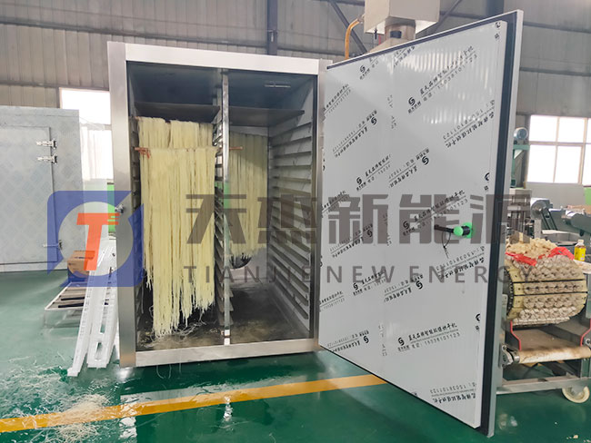 掛式烘干機顧名思義,外觀上和箱式是一樣的,區(qū)別于烘干物料的方式。就拿掛面烘干舉例,烘干掛面是將掛面掛于箱體內(nèi)進行烘干。 掛式烘干機特點: 1、安裝方便:安裝、拆遷方便,占地面積少,可裝于室內(nèi)、外。 2、效率高節(jié)能:在空氣中吸收大量熱量,輸進箱體。 3、有利于環(huán)境保護:在烘干的過程中沒有燃燒物及排放物,是一種可持續(xù)發(fā)展的產(chǎn)品。 4、運行可靠:無易燃,易爆,中毒,短路等危險,是一種可靠的全封閉干燥系統(tǒng)。 客戶烘干米粉現(xiàn)場 客戶烘干掛面現(xiàn)場 掛式烘干機采用PLC控制操作系統(tǒng),性能穩(wěn)定,操作方便,