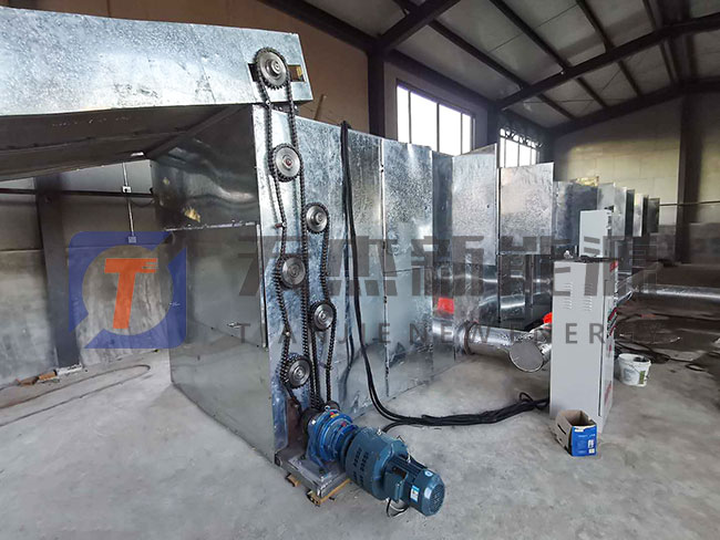 燒煤燒柴烘干機采用多層結(jié)構(gòu),烘干面積大,能實現(xiàn)大批量連續(xù)生產(chǎn)。燃燒爐和烘干機的熱風(fēng)是隔離的兩個部分,燃燒所形成的物質(zhì)全部排出室外,不對箱體內(nèi)物品污染,達到食品衛(wèi)生標(biāo)準(zhǔn)。被烘干物料采用多層移動式不銹鋼網(wǎng)帶傳送,熱氣流自下而上穿過網(wǎng)帶及其上的物料層,多層循環(huán)翻轉(zhuǎn),逐層烘干,熱質(zhì)交換均勻,生產(chǎn)效率高,產(chǎn)品質(zhì)量好。 熱源為效率高節(jié)能熱風(fēng)爐,在室內(nèi)燃燒,燃燒后的熱空氣經(jīng)過轉(zhuǎn)熱器,把高溫?zé)崃哭D(zhuǎn)換成適宜的低溫?zé)崃浚D(zhuǎn)換后的熱風(fēng)為純凈熱氣流,經(jīng)濟,有利于環(huán)境保護。 適合烘干物料 客戶現(xiàn)場