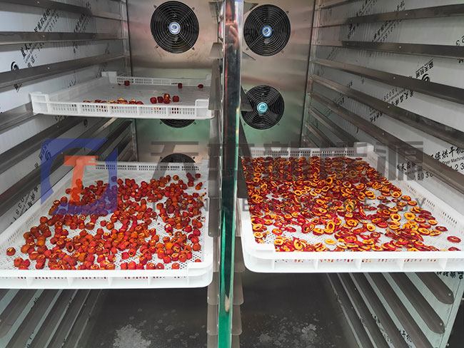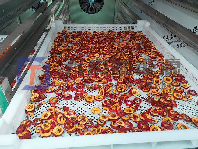 被全自動山楂烘干機加工后的山楂干香脆可口,色澤鮮艷